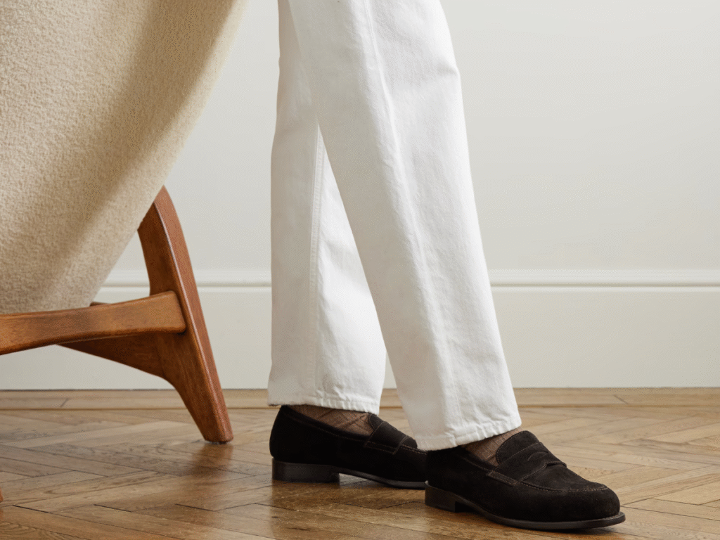 While black leather remains the gold standard for business settings, brown leather or soft suede in earthy tones opens the door to more relaxed styling. They’re the type of shoe that can take you from Monday meetings to Friday night cocktails without missing a beat. A great pair of penny loafers isn’t just footwear—it’s a rite of passage for any man building a versatile shoe rotation.