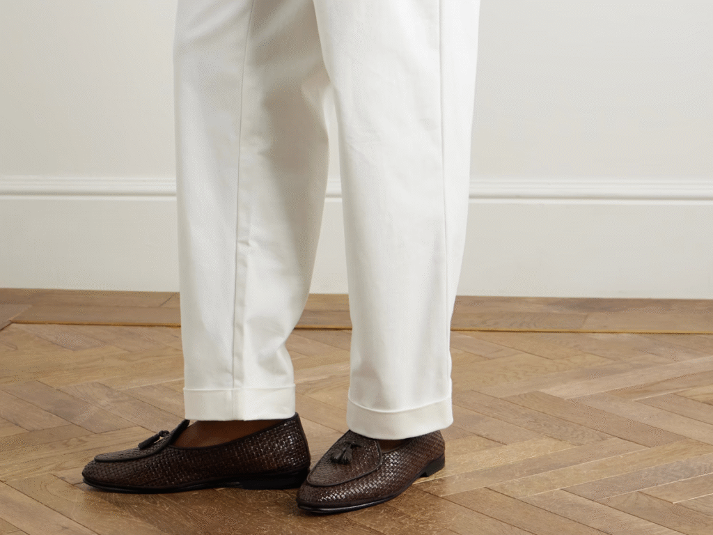 If you’re ready to invest, Belgian loafers are the perfect mix of elegance and versatility. Pair them with slim-fit chinos for a gallery opening, cropped dress trousers for a rooftop dinner, or lightweight wool pants when the weather turns cooler. Their appeal lies in their adaptability—dressy enough for a date night, yet laid-back enough for an afternoon coffee run. A true wardrobe staple, these are the shoes you’ll find yourself reaching for season after season.