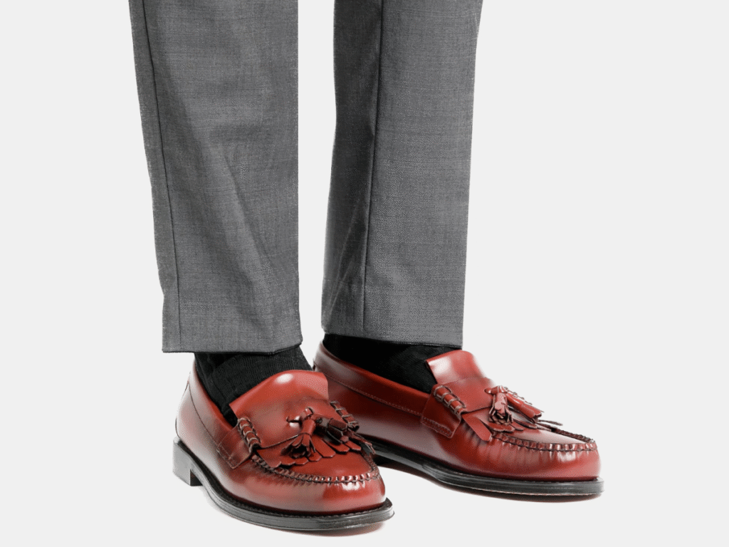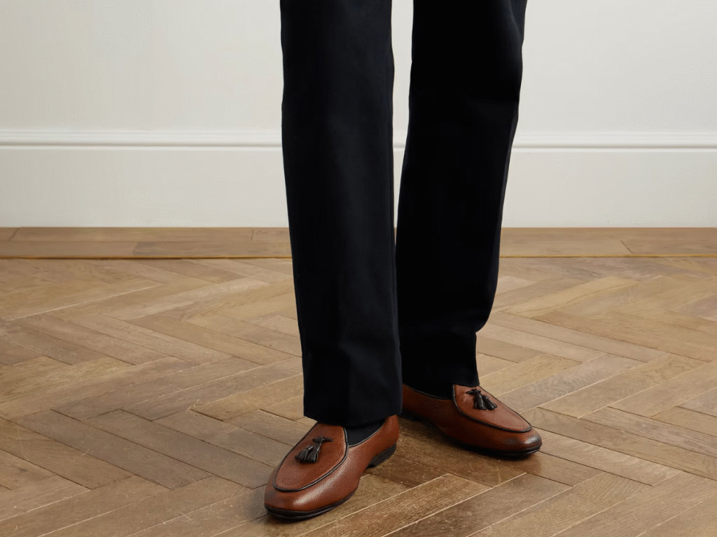 Modern tassel loafers come in rich calfskin, luxurious suede, and even two-tone leather for those who prefer a bit more flair. A black pair instantly sharpens a navy suit, while chocolate brown suede or tan leather can add warmth to your casual chinos or linen trousers. They’re the ideal in-between shoe—more character than a penny loafer, yet still classic enough to wear season after season without feeling outdated.