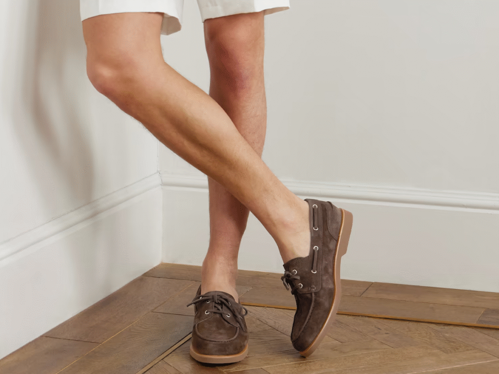 Designed from supple suede or buttery leather, driving shoes conform to your feet for glove-like comfort. Neutral tones like brown, beige, and grey keep them timeless, while richer colours such as navy or deep burgundy add flair. Slip them on with rolled-up chinos for lunch at a café or pair them with tailored shorts for a coastal getaway—these shoes help you look polished without feeling overdressed. And between you and us, this is hands-down one of our favourite styles among the Many Men Magazine team; few shoes hit the sweet spot between comfort and sophistication quite like these.