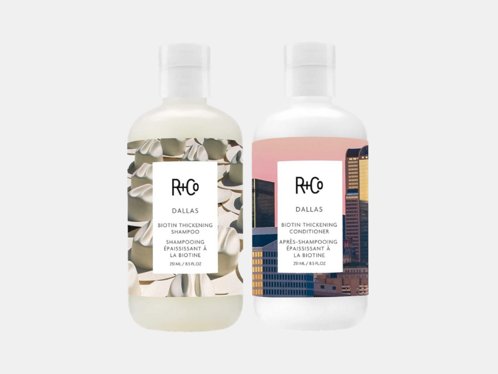The R+Co Dallas Thickening Shampoo and Conditioner Set provides a rich volumizing experience, specifically designed for fine or thinning hair. Enriched with natural ingredients like biotin, keratin, and vitamin E, this duo not only strengthens and protects your hair but also improves its thickness and texture. The shampoo gently cleanses while lifting roots and enhancing volume, whereas the conditioner nourishes and detangles, ensuring your hair remains soft, bouncy, and manageable. Ideal for men looking to boost their hair’s volume and vitality without adding extra weight, regular use leads to visibly thicker and fuller hair that appears naturally healthy.