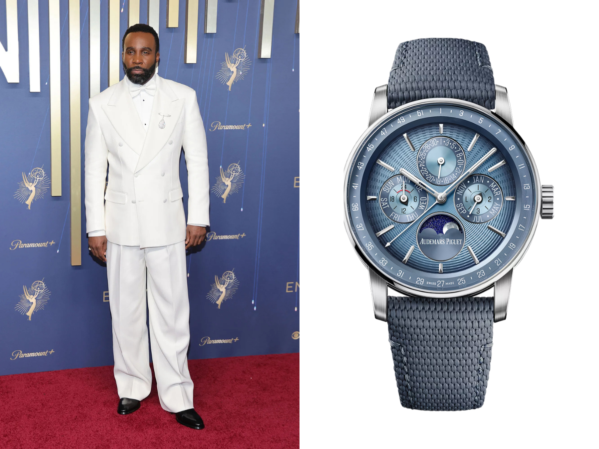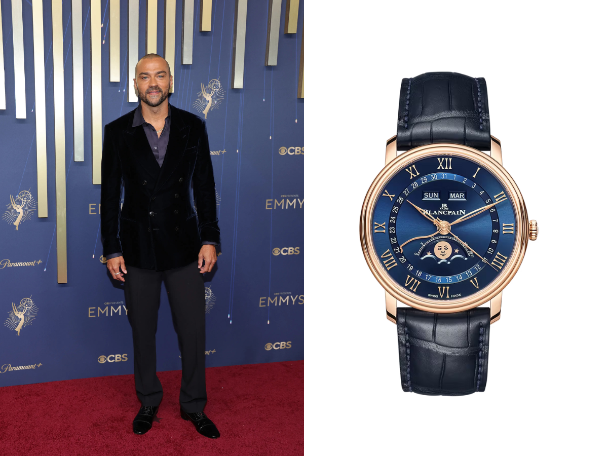 Jesse Williams may have been on stage as a presenter, but his wrist did plenty of the talking at the 2025 Emmys. The Grey’s Anatomy star wore a Blancpain Villeret Quantième Complet (Ref. 6654 3640 55B), a piece that radiates refined elegance. Its 18-carat red-gold case frames a striking blue dial, complete with a moon phase complication and full calendar that blend classic horology with poetic detail. Powered by Blancpain’s 6654.4 self-winding calibre and finished with a sapphire crystal back for a glimpse at its inner workings, this watch is as much art as it is engineering. With a price tag of USD $35,200, it’s a reminder that Williams’ style sense extends far beyond the operating room.