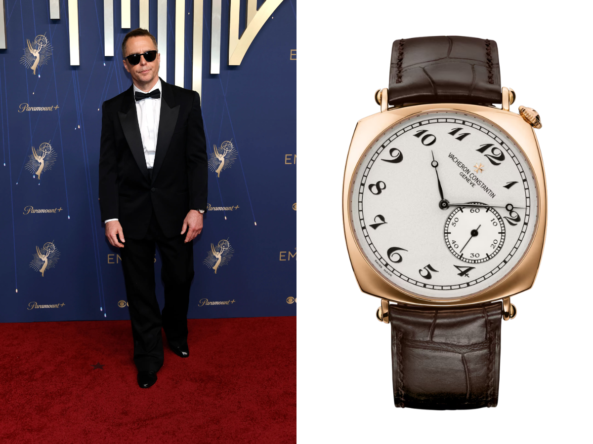 Sam Rockwell may not have left the Emmys with a trophy in hand — The White Lotus only managed one win on the night — but his wrist was definitely a winner. The actor arrived in style wearing the Vacheron Constantin Historiques American 1921 (Ref. 82035/000R-9359), a 40 mm pink gold masterpiece inspired by the brand’s 1921 model. With a diagonal dial, bold numerals, and a crown nestled between 1 and 2 o’clock, it’s the kind of watch that stands out while remaining effortlessly sophisticated. Interestingly, White Lotus co-star Walton Goggins also chose a Vacheron on the same night — the Overseas Perpetual Calendar Ultra-Thin — showcasing two actors with impeccable taste in the same brand but a very different approach to style. This watch costs USD $48,750.