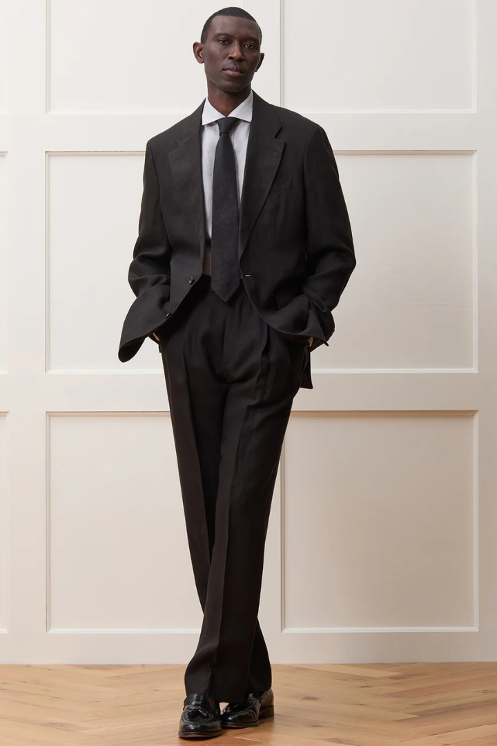 What makes this suit stand out is its ability to elevate linen into truly luxurious territory. In black, it feels sharp, commanding, and timeless—perfect for evening events, summer galas, or nights when you want to look formal without the heaviness of wool. It’s proof that when executed at this level, linen can rival any fabric in sophistication. For us, this is summer tailoring at its most refined, and precisely why Cucinelli continues to define Italian elegance.