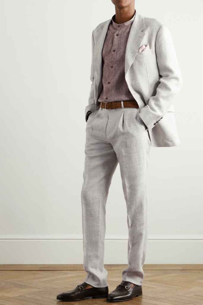 - Best Linen Suit Overall: Loro Piana Jacket & Carlo Straight-Leg Trousers