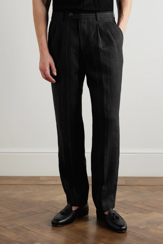 Paired with the matching trousers, the suit strikes that balance between timeless and contemporary. The clean lines and darker tone make it versatile enough for rooftop dinners, cocktail parties, or even a night at the beach club where you want to look a little more dressed up. Black linen isn’t the most obvious choice, and that’s exactly the point—it’s confident, stylish, and proof that summer tailoring doesn’t have to play by the same old rules.