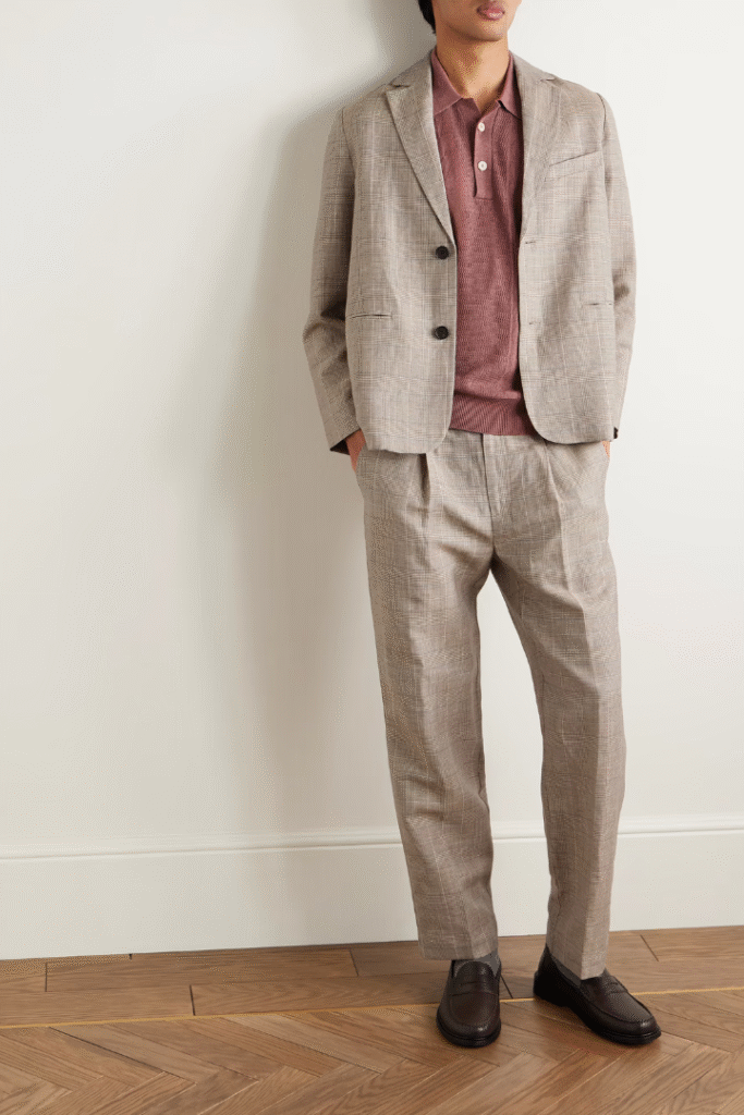 Corridor offers a playful twist on traditional tailoring with its Checked Linen & Wool-Blend Suit. The lightweight blend keeps the structure crisp structure while remaining breathable, making it a smart choice for warmer months. The check pattern adds a touch of personality without being overpowering, striking the perfect balance between casual charm and sophisticated refinement. It’s a suit that looks just as great on a rooftop bar as it does at a relaxed summer wedding.