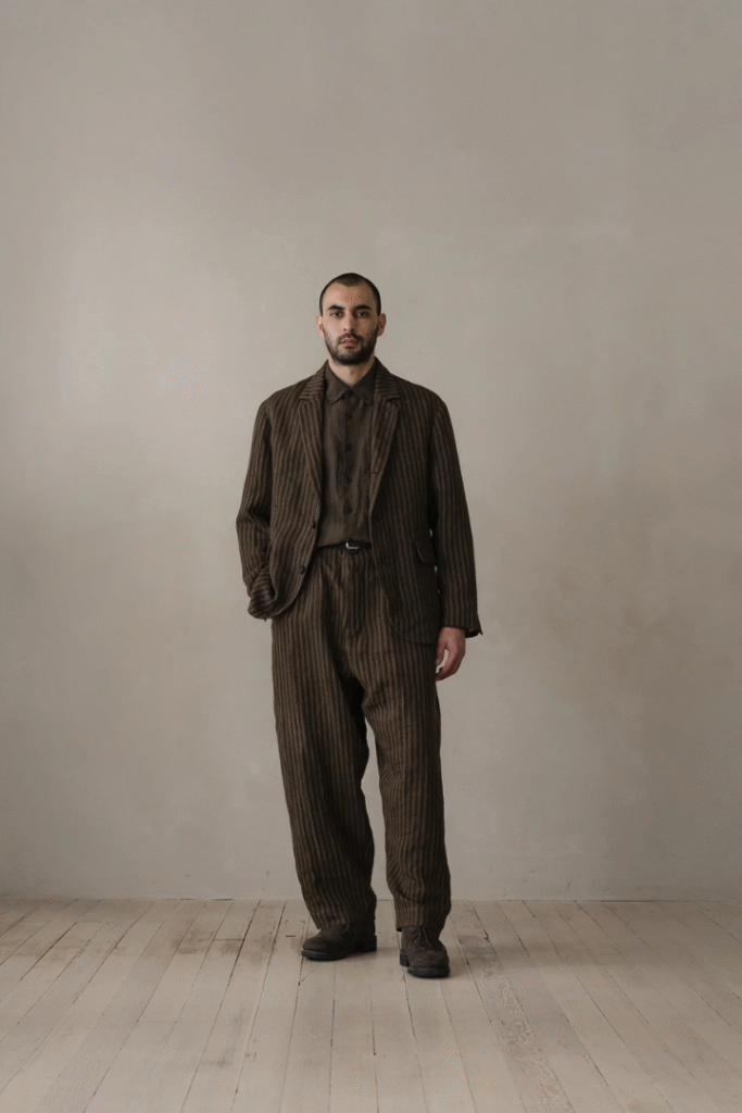 The rich brown tone adds depth and sophistication, giving the suit a timeless appeal that works just as well today as it did with its vintage inspiration. It’s understated yet confident, the kind of tailoring that doesn’t follow trends because it doesn’t need to. This is Bode at its best—taking a classic and reminding us why it never went out of style in the first place.