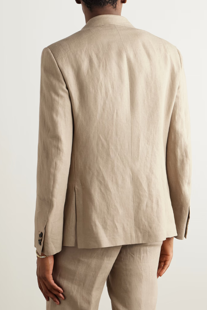 - Best Double-Breasted Linen Suit: Boglioli Double-Breasted Garment-Dyed Linen Suit