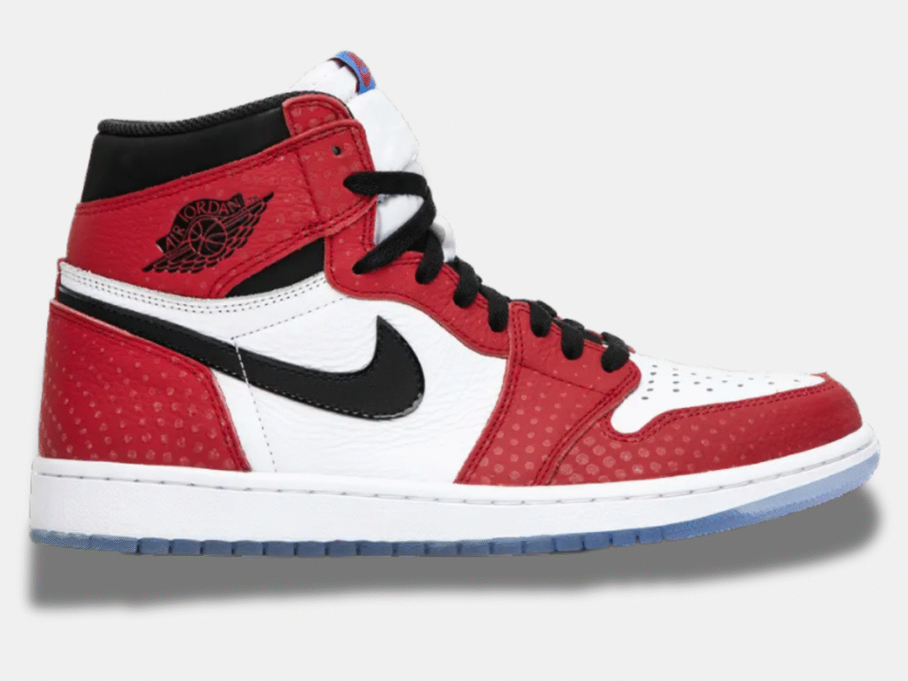 Released alongside Marvel’s Spider-Man: Into the Spider-Verse in 2018, the Air Jordan 1 Retro High ‘Spider-Man Origin Story’ reimagined the classic Chicago 1 with a comic-book twist. Featuring translucent icy soles, reflective dot patterns across the red overlays to mimic Spidey’s suit, and subtle blue accents, the sneaker perfectly captured the film’s vibrant energy. Worn by Miles Morales on screen, it quickly became a crossover hit between sneaker culture and superhero fandom. Limited quantities and a unique story behind the design made it a must-have, once again demonstrating how the AJ1 continues to connect worlds far beyond basketball.