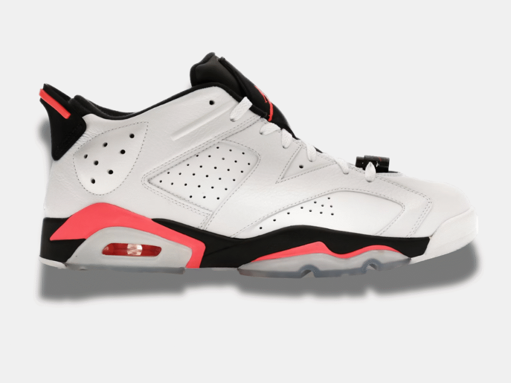 The Air Jordan 6 Retro ‘Infrared White’ is a sleek and timeless alternative to the Black Infrared 6 that Jordan wore during the 1991 NBA Finals. Featuring a smooth white leather upper with striking hits of infrared on the midsole and heel tab, this version maintains the championship spirit while adding a brighter, summer-ready twist on the classic. Over the years, its sharp design and historical connection to MJ’s first title run have made it a fan-favourite retro, showing that whether in black or white, the Infrared 6 will always hold a special place in Jordan Brand’s legacy.