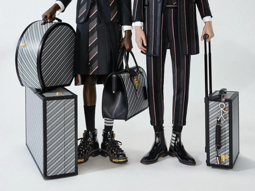 Thom Browne brings his signature avant-garde tailoring and playful design language into the world of travel, offering luggage that’s as bold as it is luxurious. Known for clean lines, meticulous craftsmanship, and his iconic four-bar stripe motif, the brand’s travel pieces range from pebble-grain leather trolleys to stripe-detail duffels and even the whimsical Hector dog-shaped bags. Each item strikes a balance between functionality and unmistakable style, ensuring you stand out in an airport crowd. For fashion-conscious travellers who view luggage as an extension of their wardrobe, Thom Browne offers pieces that make every trip feel like a runway.