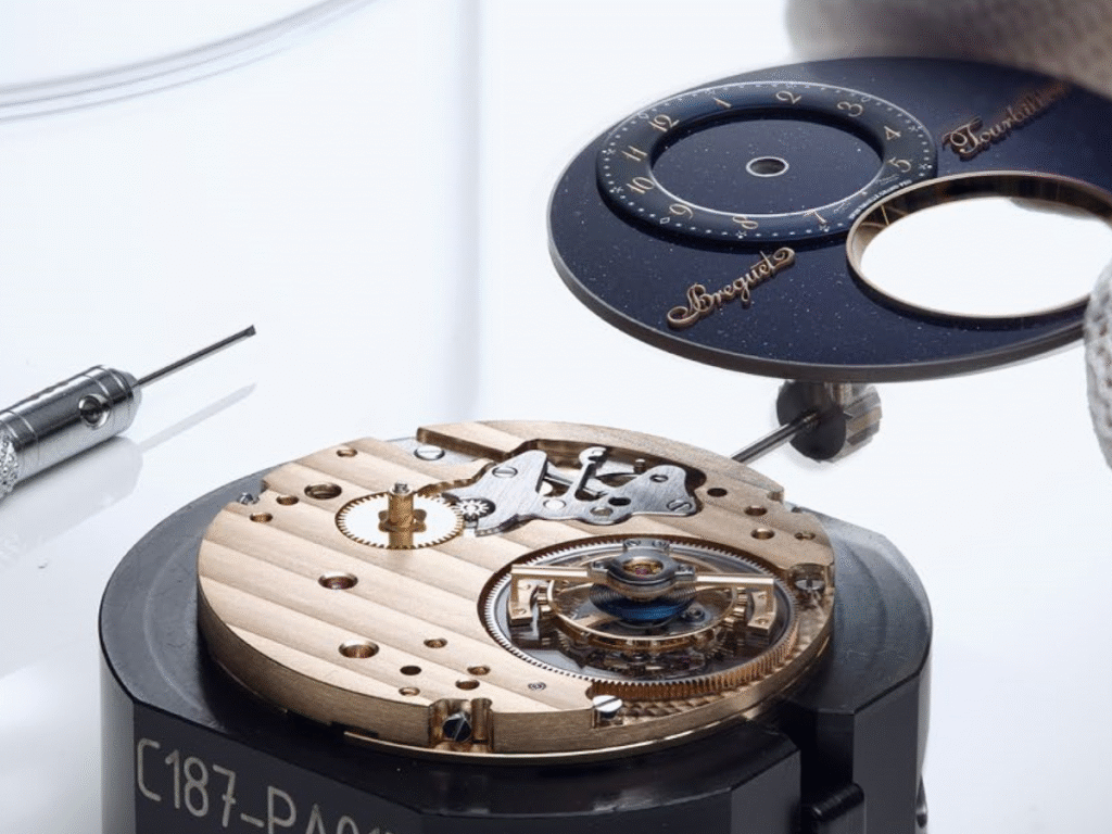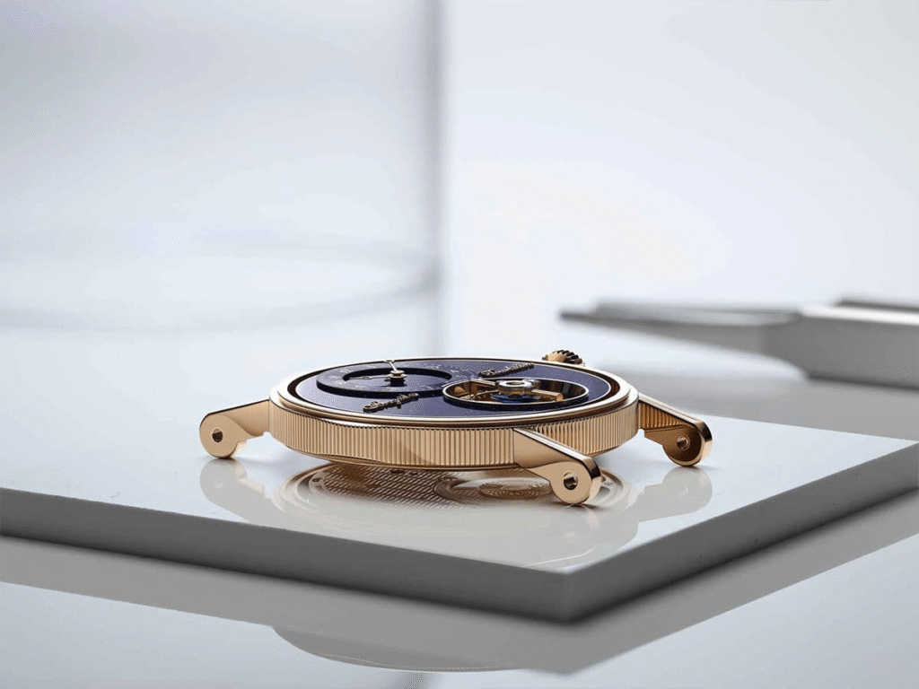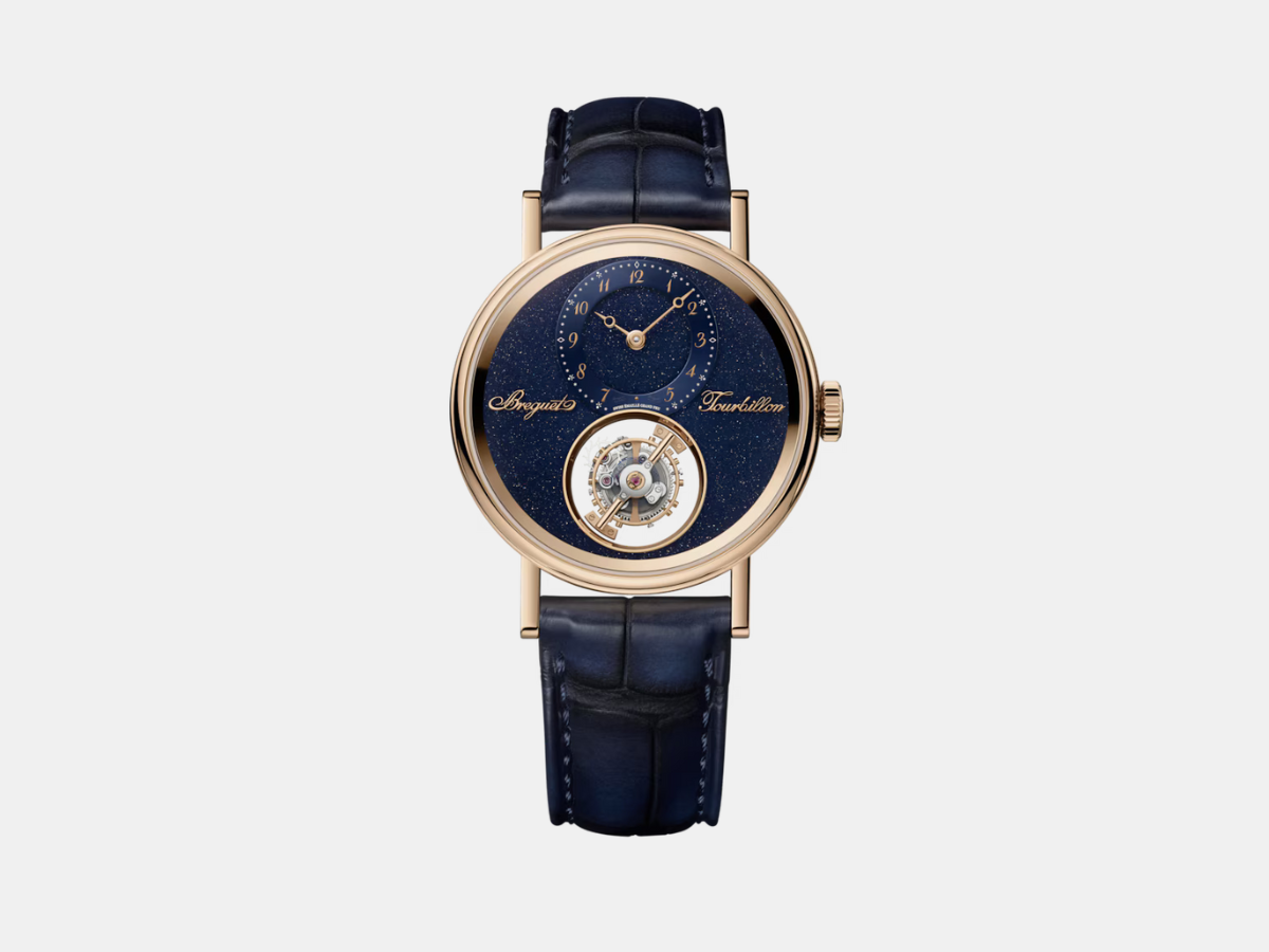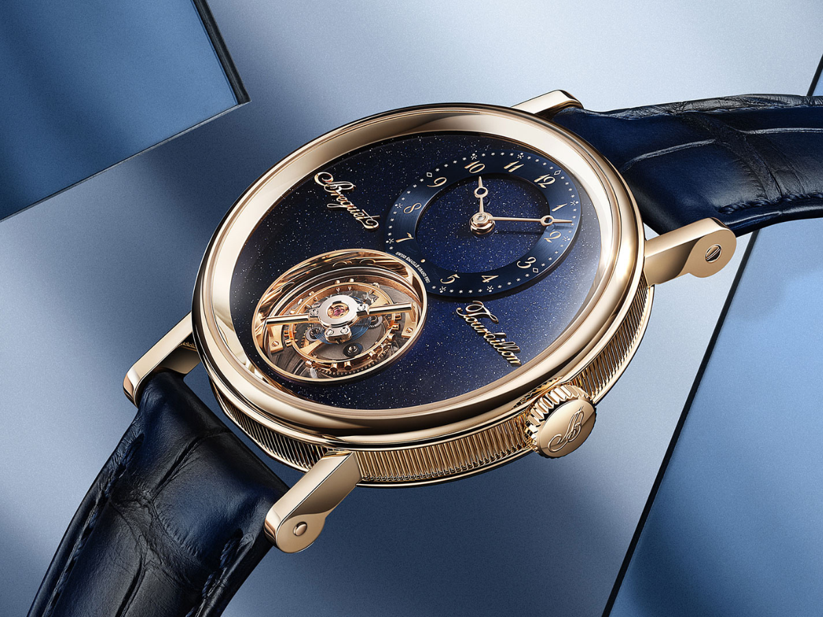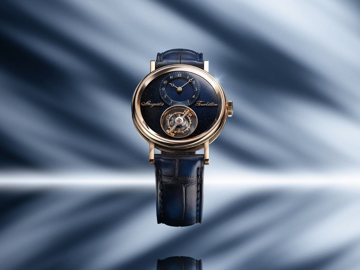 This isn’t your ordinary dial; Breguet introduces something entirely new to the brand’s collection. For the first time, Breguet uses aventurine enamel, a material chosen for its celestial sparkle and its connection to the astronomical studies that once fascinated Abraham-Louis Breguet. Its deep blue surface glows with a star-like brilliance, creating a cosmic backdrop for the newly liberated tourbillon. Together, the airborne mechanism and the night-sky enamel transform this timepiece into more than just a commemorative piece — it becomes a poetic bridge between centuries of horological mastery and the future Breguet continues to shape.