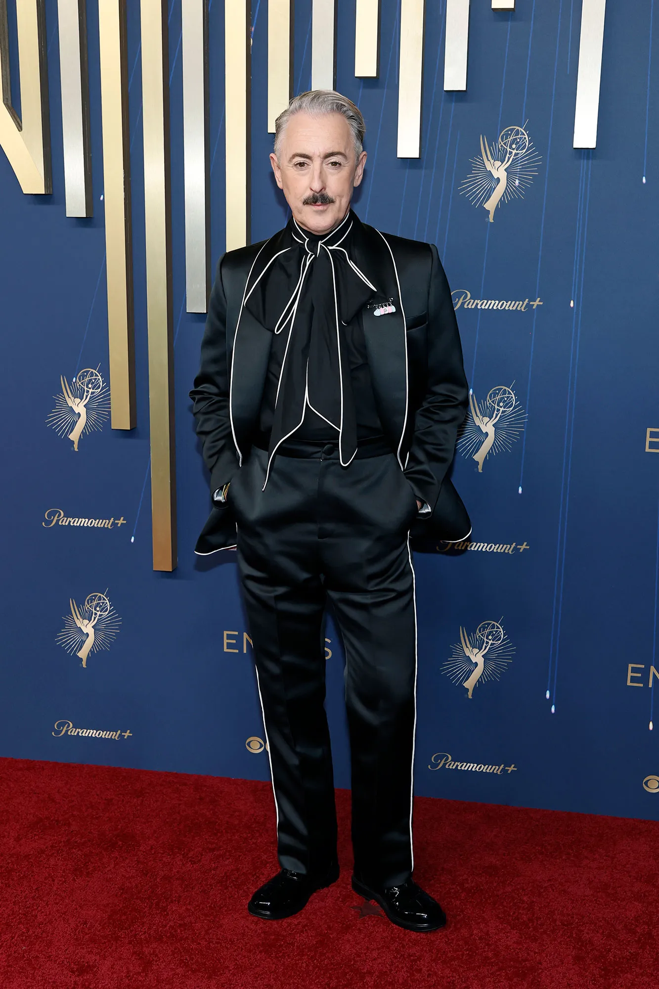 The 2025 Emmys red carpet showcased plenty of bold choices, with Alan Cumming leading the way. His custom black Tanner Fletcher suit with sharp white trim transformed a classic silhouette into something much more striking, while an oversized bow tie added a playful touch. Complete with slicked-back hair and shiny Bottega Veneta shoes, the look struck a perfect balance between polished and fun — the kind of red carpet moment that’s unmistakably his.