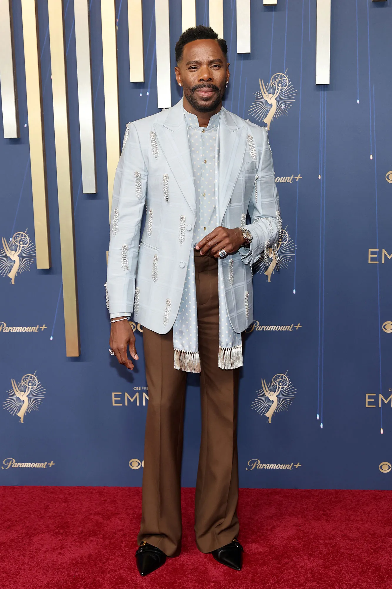 Colman Domingo Dressed In A Valentino Pale Blue Jacket, A Polka-Dot Mandarin-Collar Shirt With Brown Trousers | Image: Getty Image – Amy Sussman