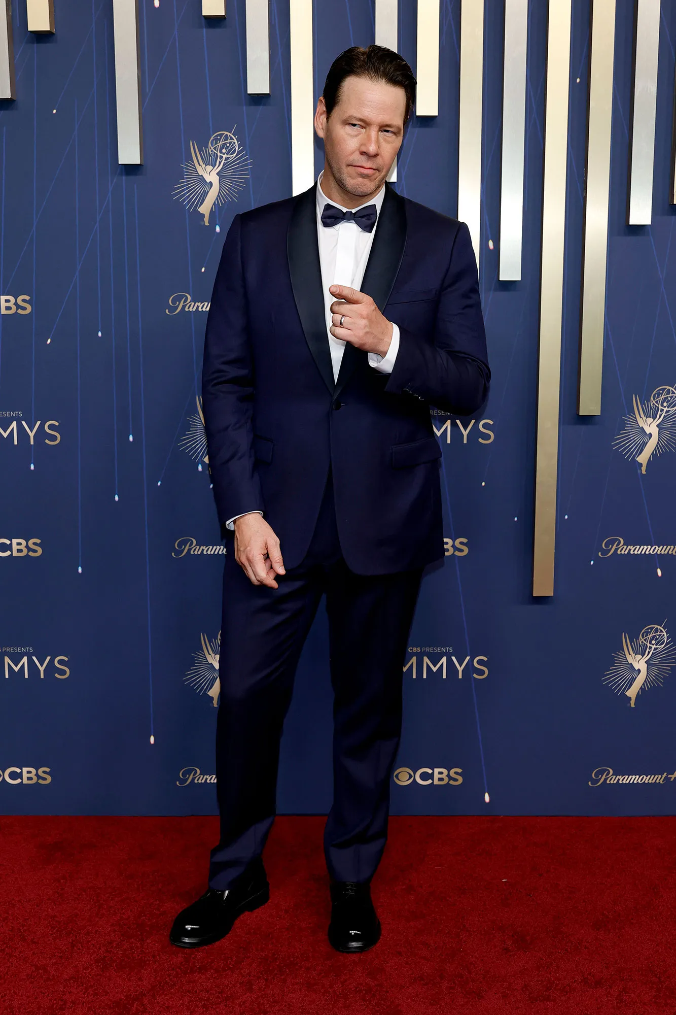 Ike Barinholtz brought a relaxed confidence to the Emmys in a navy Dior tuxedo that looked polished without appearing overdone. The choice of navy over black added some personality, while the cut showcased Dior’s talent for sharp, effortless tailoring. Paired with classic touches like a bow tie and dress shirt, the outfit didn’t need any extra flair — it worked because it let Barinholtz’s laid-back charm do the heavy lifting.