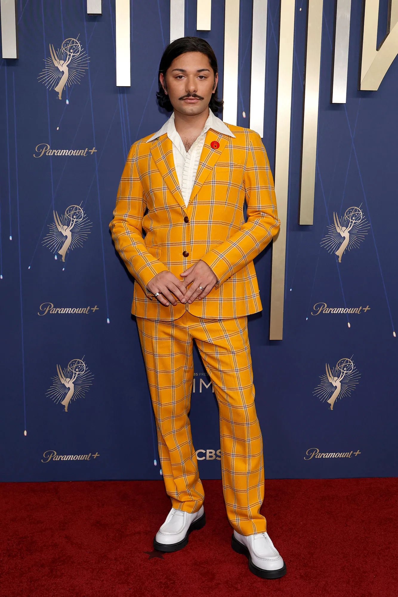 Mark Indelicato lit up the red carpet in an orange Etro suit that was impossible to miss, paired with a vintage ruffle shirt that gave the whole look a groovy nod to the 1970s. The bold colour and retro detailing felt playful yet polished, the kind of outfit that captures attention without trying too hard. It was a perfect blend of throwback energy and modern tailoring, proving that sometimes the best red-carpet moments are the ones that channel a little vintage spirit.