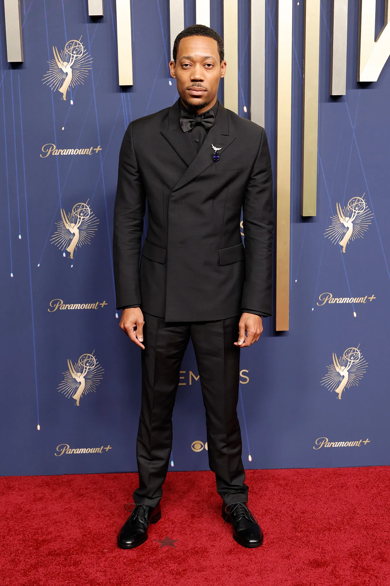 At the 2025 Emmy Awards, one of the most striking all-black ensembles belonged to Tyler James Williams. His double-breasted Prada mohair tuxedo, paired with a black poplin shirt and satin bow tie, gave the traditional tuxedo a moody, modern twist. Polished leather lace-ups kept the look grounded in classic style, while a touch of Tiffany & Co. jewelry added a subtle shine under the lights. Sleek, stylish, and effortlessly confident — it was a masterclass in making monochrome feel fresh.