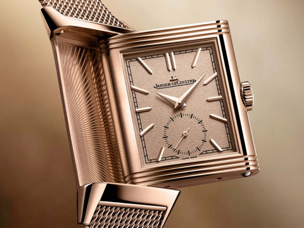 But what truly elevates this piece is the bracelet: a Milanese mesh strap made entirely of Pink Gold 750/1000 (18 carats), designed to match the warmth and character of the case. It’s fluid, flexible, and sits comfortably on the wrist. Inside, the manually wound Calibre 822 delivers a 42-hour power reserve in a movement just under 3mm thick. If you’re building a refined dress watch collection or simply have a soft spot for gold watches, this Reverso hits all the right notes.