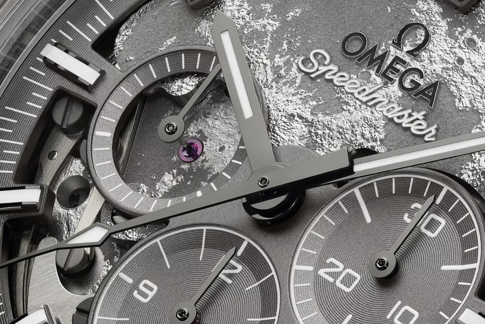 One of the biggest changes with these new models comes down to how Omega has worked with ceramic. The Dark and Grey Side of the Moon watches have always embraced modern materials, but this time, the execution feels more refined. The dial design takes inspiration from the classic Moonwatch, particularly in how the details are shaped and layered. It’s constructed with two ceramic layers, which adds depth to the surface and creates a subtle play of light. The subdials sit slightly lower, so depending on the angle, they catch the light differently. It’s not flashy, but it adds character to the watch and makes it easier to read at a glance.