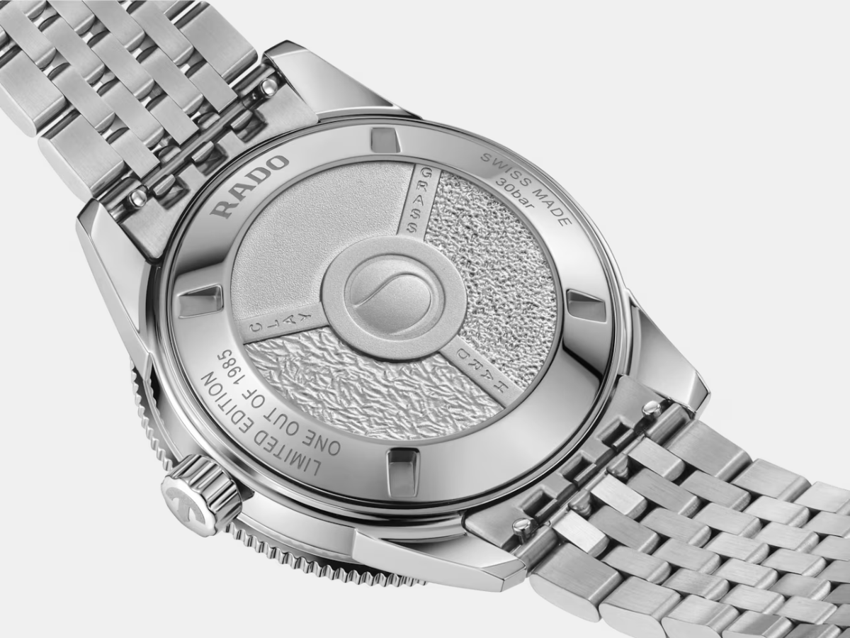 Flip the watch over, and the tribute deepens — the caseback features a dedicated anniversary engraving along with a three-layered embossing that represents the trio of iconic playing surfaces: grass, clay, and hard, which is genius thought in my opinion. It’s thoughtful, understated, and executed with the kind of precision you expect from Rado.