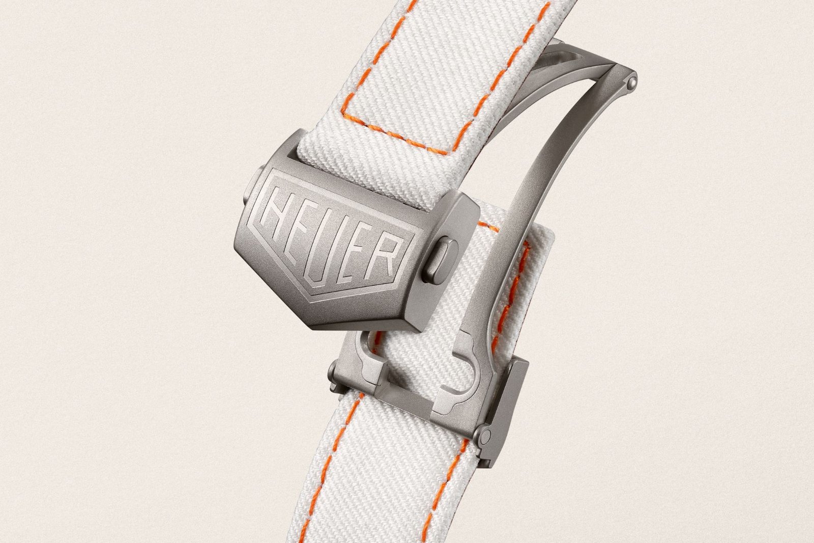 A key detail is located just below 12 o’clock, where the vintage Heuer shield logo reappears, positioned beneath the Monaco name as a subtle but impactful tribute to the original pieces from the collection’s early days. Though small, this element grounds the watch in its history and signals to collectors that it’s not just a modern reimagining, but a respectful homage to a storied legacy.