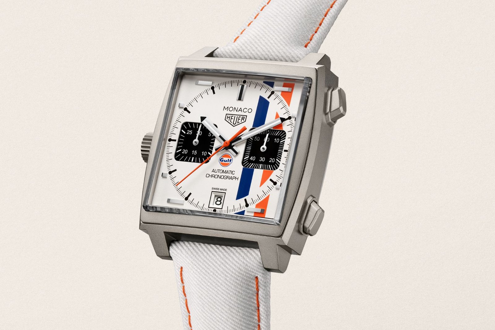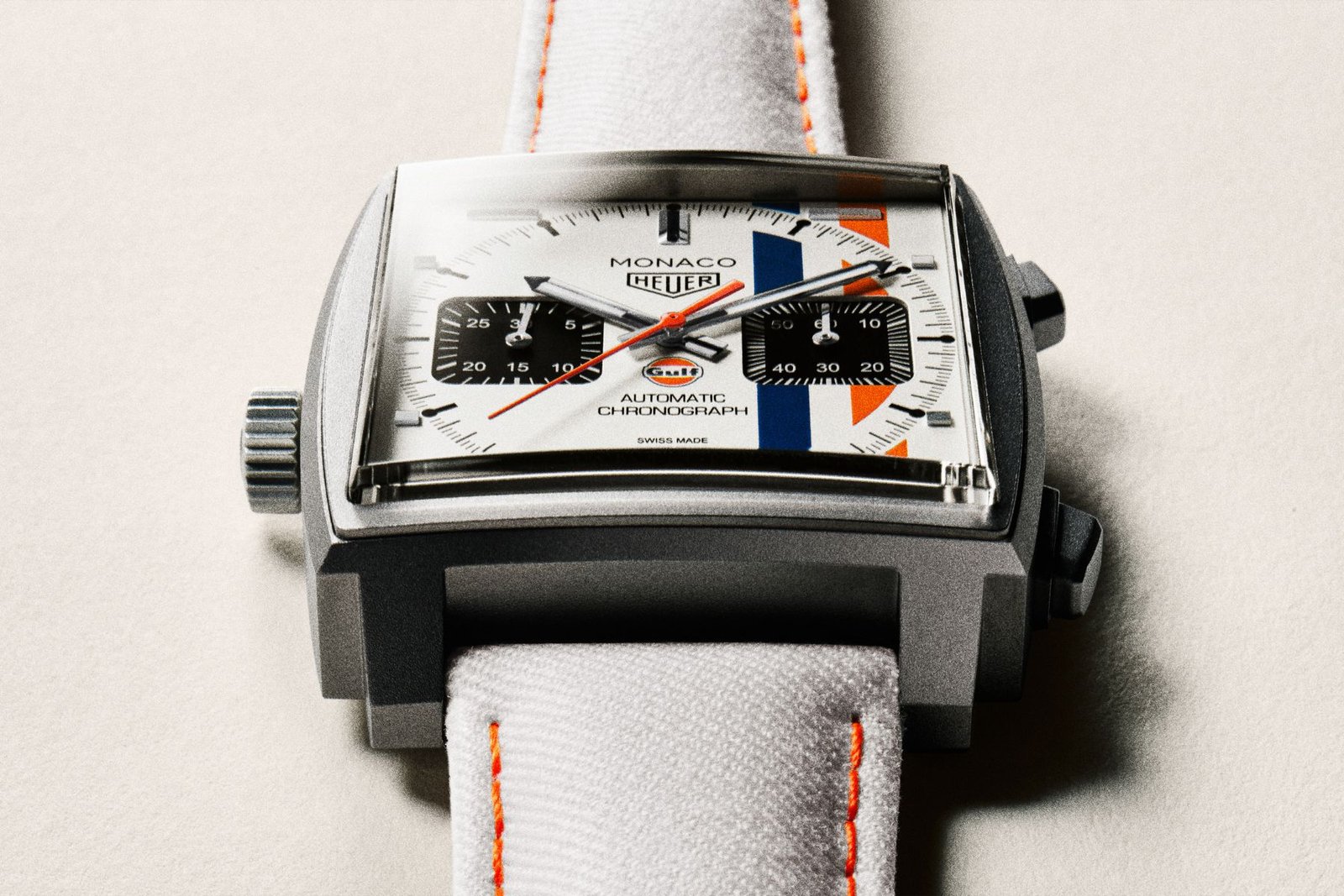 - The Monaco Chronograph x Gulf honours the spirit of Steve McQueen, celebrating the cinematic legacy of Le Mans and the square-cased watch that became a symbol of motorsport style.