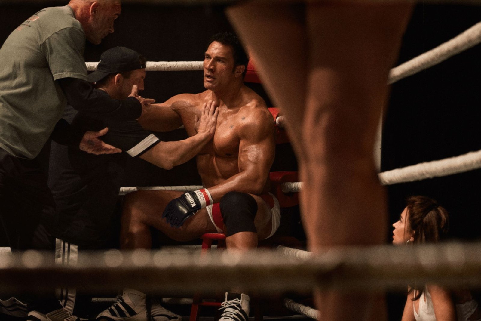 A lot of this feeling comes from the way the movie is shot. The camera stays close, but not always where you’d expect, especially during the fight scenes. Rather than putting you right in the action, it keeps you just outside, surrounded by the noise and movement around the ring. It feels messy in a natural way, and that makes it a little tougher to watch, but in a good way.